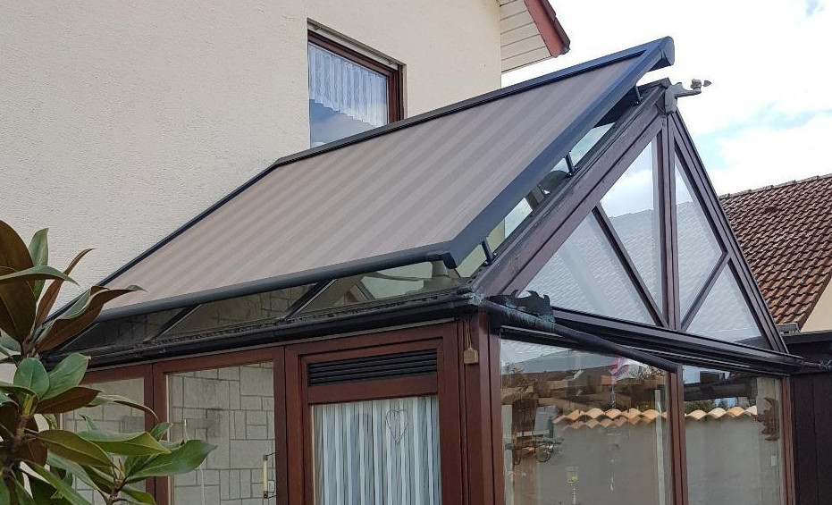 Die Aufdachmarkisen ATHENE und ATHENE XL von MOBAU sind die ideale Lösung für effektiven Sonnen- und Hitzeschutz bei Wintergärten und Glasdächern. Direkt auf dem Dach montiert, stoppen sie die Sonneneinstrahlung, bevor diese auf die Glasflächen trifft und den Innenraum aufheizen kann. So bleibt dein Wintergarten oder deine Terrasse auch an heißen Tagen angenehm kühl und nutzbar.